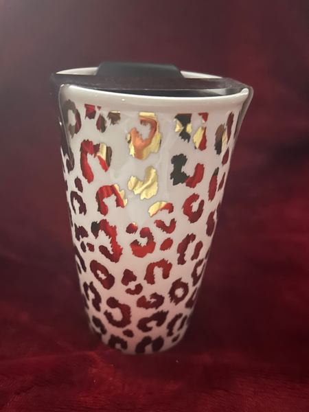 Crafted from durable ceramic, this 12 oz travel mug combines functionality with refined aesthetics. The gold printed design adds a touch of sophistication to your daily commute. Double-wall insulation maintains beverage temperature for hours, while the secure lid prevents spills during travel. Dishwasher safe for convenient cleaning. Perfect for coffee, tea, or any hot or cold beverage, this mug delivers reliable performance whether you're heading to the office or exploring the outdoors.